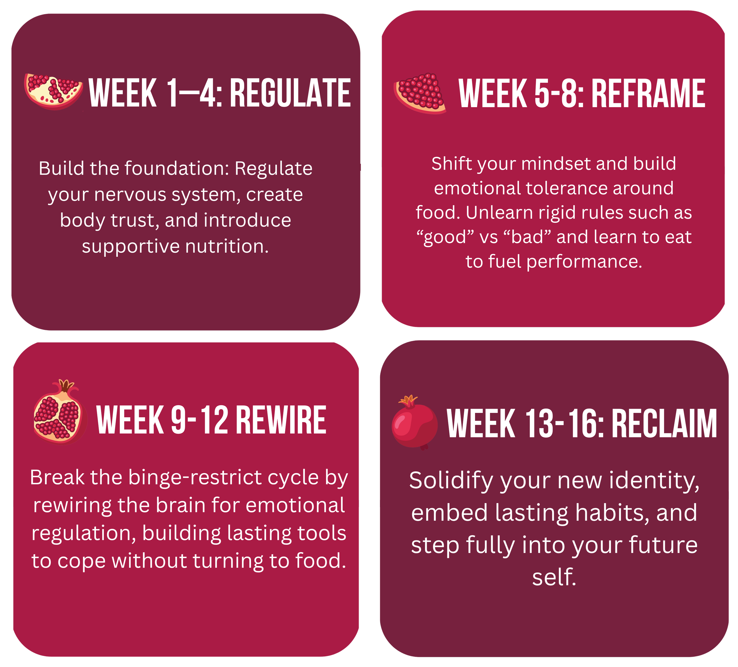 I’m Savanah - the founder of Beyond Her Body, and I know what it’s like to be stuck in the cycle of diet culture - obsessing over every bite, overtraining to make up for it, and feeling like food had all the power. I was living in the binge - restrict cycle for years, and I’m here to tell you - you do not have to stay stuck like i was.
