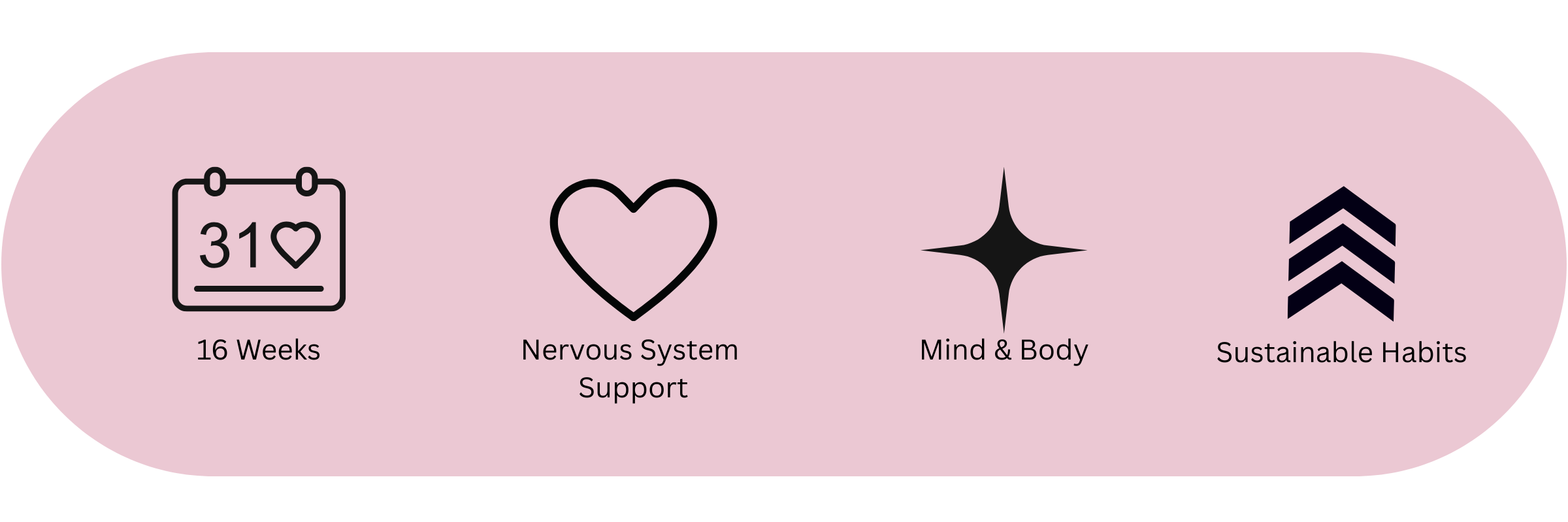 Over 16 weeks, nutrition coaching will guide you through a deep reset - helping you rebuild your relationship with food, end binge restrict cycles and achieve your goals from a place of self love. You will understand the why behind your eating patterns, and integrate simple, sustainable habits for lasting change.